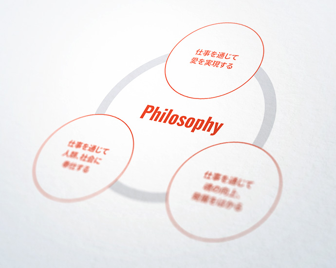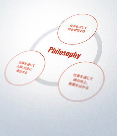 3つの理念当社の創業理念は、「仕事」をキーワードとする3つのフレーズから成り立っています。仕事を原点に、社員の成長を目指しながら、未来の地球社会と人類に貢献する技術開発を行います。